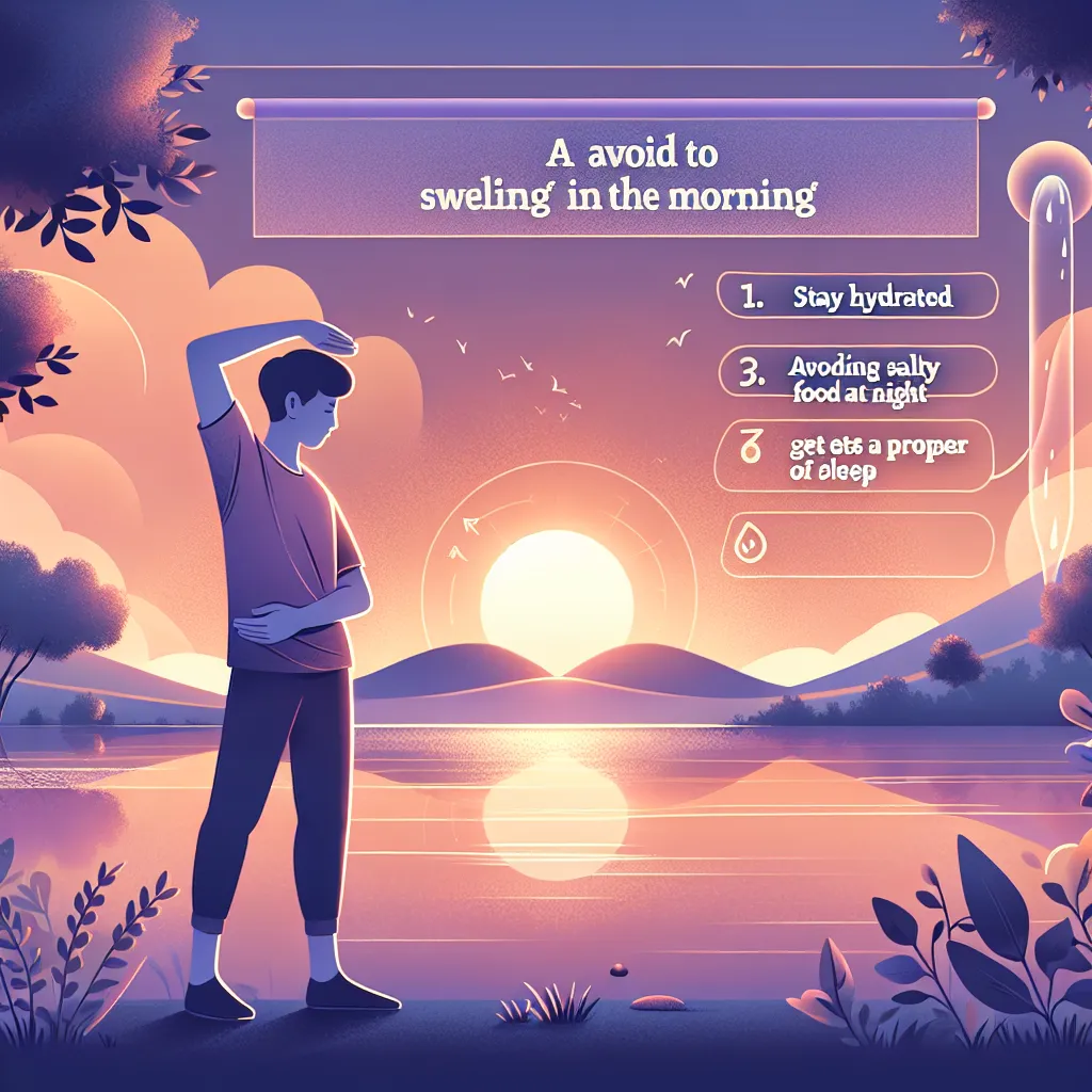 Чтобы избежать утренней отечности, следуйте этим рекомендациям: 1. **Сократите потребление соли**: Избегайте соленой пищи, особенно вечером, так как соль задерживает жидкость в организме.2. **Пейте достаточно воды**: Обезвоживание может привести к задержке жидкости, поэтому важно поддерживать водный баланс.3. **Ограничьте алкоголь и кофеин**: Эти вещества могут способствовать обезвоживанию и отечности.4. **Поддерживайте активный образ жизни**: Регулярные физические упражнения помогают улучшить кровообращение и уменьшить задержку жидкости.5. **Спите с приподнятой головой**: Используйте дополнительную подушку, чтобы уменьшить отечность лица.6. **Следите за режимом сна**: Недостаток сна может способствовать отечности, поэтому старайтесь спать 7-9 часов в сутки.7. **Избегайте поздних приемов пищи**: Ужин за 2-3 часа до сна поможет уменьшить риск отечности.8. **Проконсультируйтесь с врачом**: Если отечность сохраняется, это может быть признаком медицинской проблемы, требующей внимания специалиста.